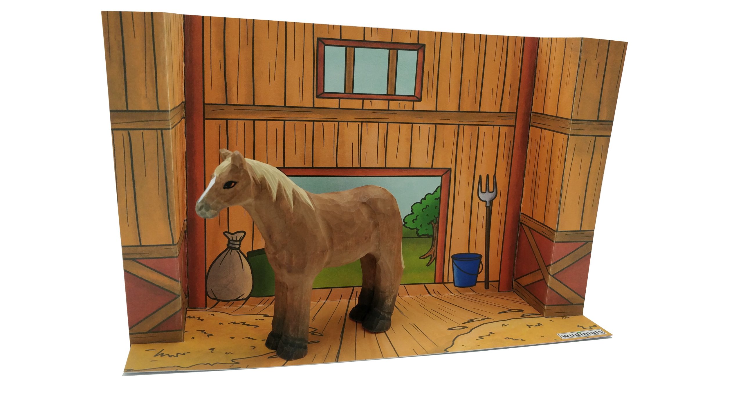 | For download only | If you have purchased a wudimal, this beautiful barn diorama is free to download and make with your child. Use as a backdrop to our unique hand carved and hand painted Wudimals®. When you place an order for Wudimals® you will receive a coupon code which will make this product free of charge on checkout. Take the time to cut out, fold and glue with your little one. Alternatively look at our black and white version for your little one to colour in and then cut out, fold and glue. |