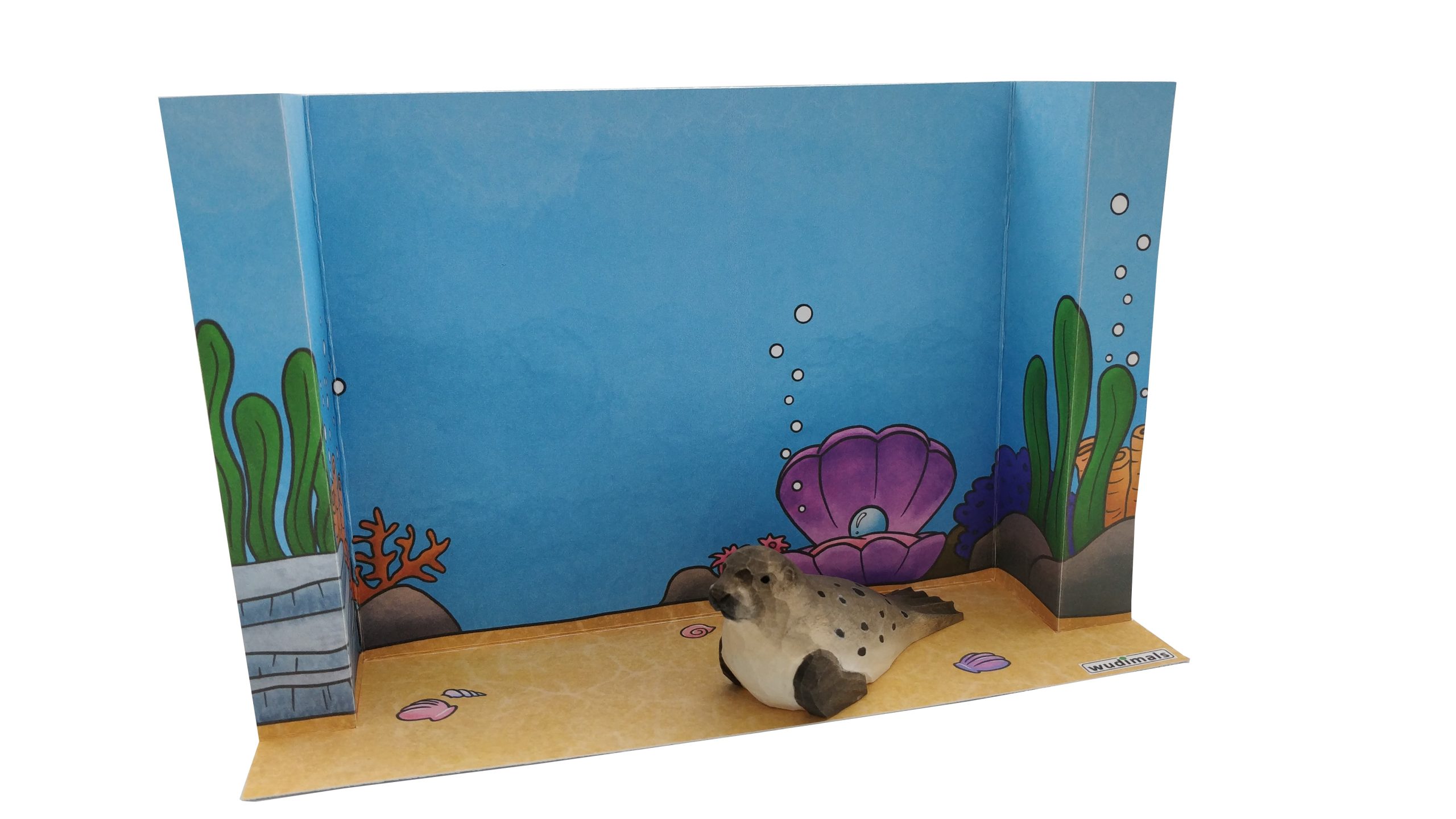 | For download only | If you have purchased a wudimal, this beautiful underwater landscape diorama is free to download and make with your child. Use as a backdrop to our unique hand carved and hand painted Wudimals®. When you place an order for Wudimals® you will receive a coupon code which will make this product free of charge on checkout. Take the time to cut out, fold and glue with your little one. Alternatively look at our black and white version for your little one to colour in and then cut out, fold and glue. |